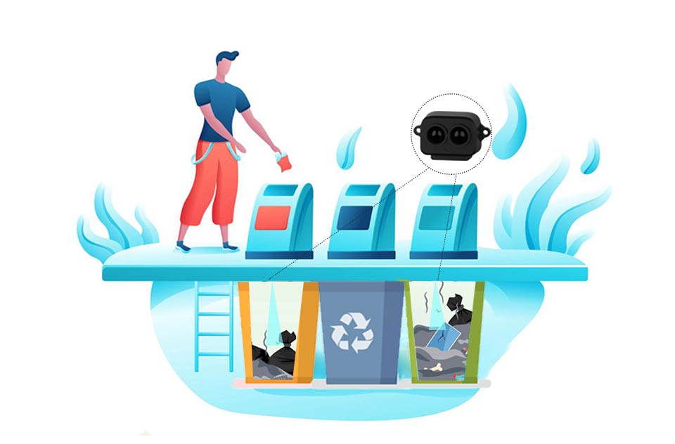 北醒开发的TF系列激光雷达模组就实现了垃圾分类的智能化和免接触,可针对垃圾桶提供两种检测方案(自动开盖检测+桶内物位高度检测)。北醒的激光雷达产品已经在很多城市的垃圾桶上安装应用,不仅可以做到无接触投放垃圾,更可以在垃圾量达到80%以后与垃圾清运车实时传送数据分配对接,使垃圾收集清运无缝对接。