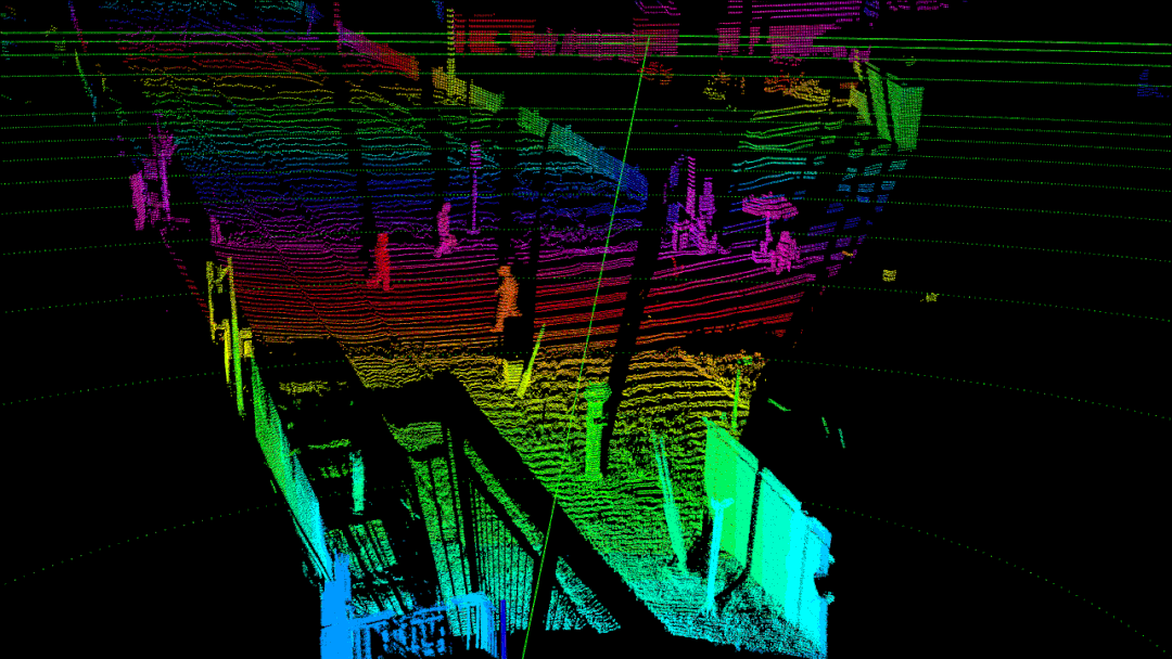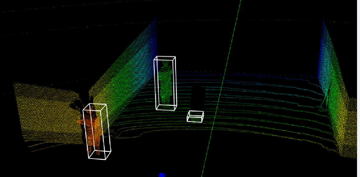 北醒激光雷达入侵监控系统用于检测禁入区域内的人员。当有人员进入监测范围区域,激光雷达可对其自动监测识别位置信息,并通过摄像头对其聚焦抓拍,将当时图像传输到管理中心,在管理中心输出报警信号。图5中,激光雷达通过点云分析并框出入侵人员。应用B:人员入侵危险区域及物品掉落预警图7 危险区域有人员闯入及物品掉落的激光雷达三维点云