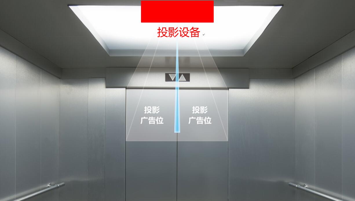 由此可见,电梯视频广告正在悄悄地获得消费者注意力。但是电梯内空间有限,相较于在电梯内安装电视,电梯投影仪无疑成为更节省空间的方案。将电梯投影仪安装在电梯内最上方,通过监测电梯门开关,实时将广告投放到电梯门位置,无需利用额外空间。图1 电梯投影效果示意图