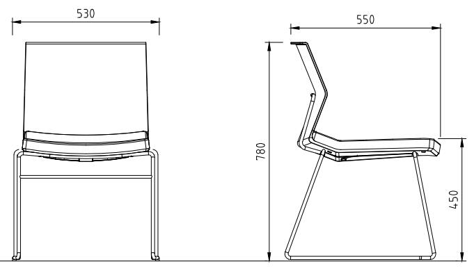 4、雪橇椅脚:采用∮12mm实心冷拉钢条制成,上方设有椅背支撑架,表面为塑料喷粉工艺处理。