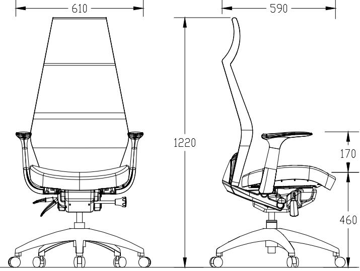 1、椅背可倾仰、3级锁定,锁定微回弹,倾仰松紧调节。