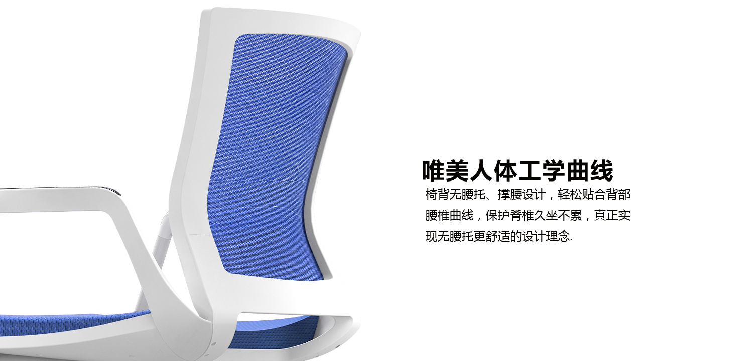 1.椅背:优质米白色尼龙新料,采用小蛮腰弧线设计,紧贴合人体脊柱生理曲线,时刻托护脊背,实现无腰枕而撑腰感十足的目的,椅背中间为透气弹性网布结合,椅背框下端左右两处独立与座包连接,整体椅背线条流畅、整洁,国际范十足,符合人体工学。