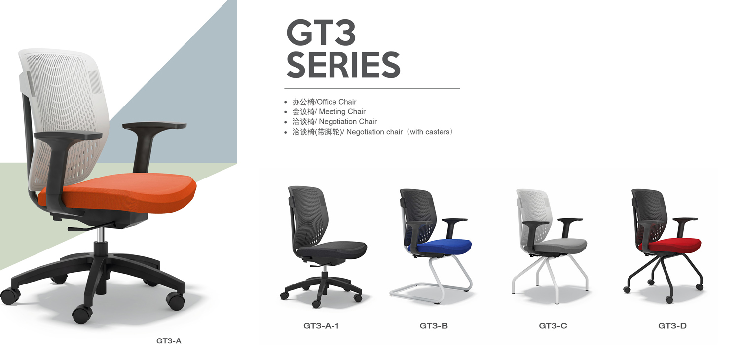 GT3 系列座椅是 GT1 和 GT2 的补充延伸,更丰富了 GT 系列,是诺高座椅和日本 TOYO TAPER 设计团队合作的结晶。GT3 沿用 GT2 的底盘自重机制设计,能依据用户后仰时的体重感应人体的背部重力,自行提供最舒适的承托。GT3 系列是集众多需求于一身的新型产品,背部采用纯 PP 胶壳,镂空透气的设计,给人耳目一新的感觉。这是一款性价比较高的办公椅,简约时尚不失稳重优雅,适合更多年龄群体,能更容易面向更广泛的国家和地区。