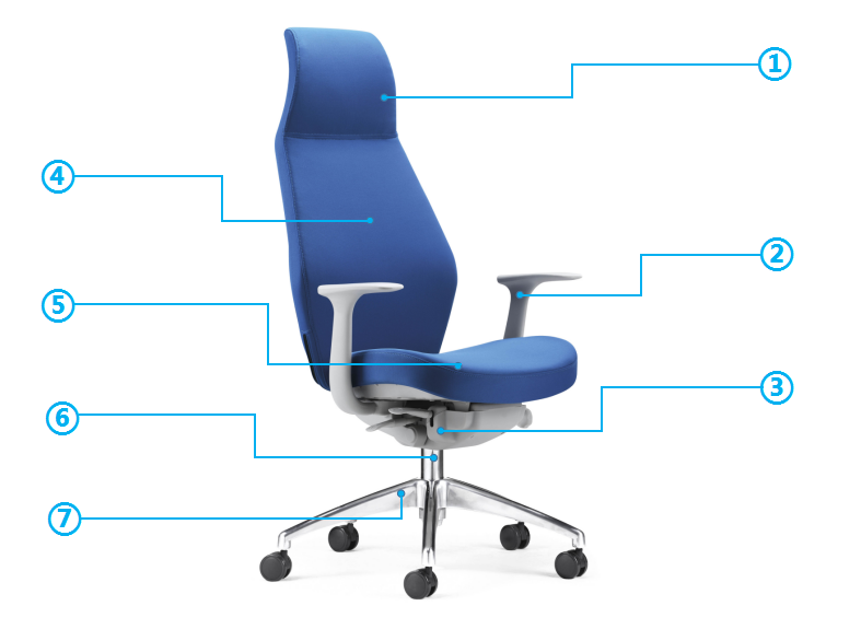 4.Back: Ergonomic upholstered fabric backrest provides exceptional comfort for a more formal appearance.