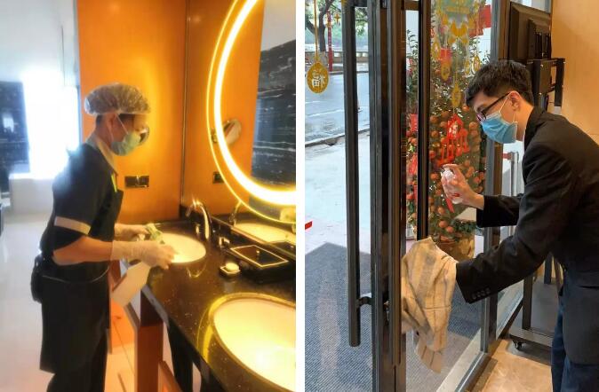 岭南集团旗下各酒店在按旅店业卫生标准进行正常消毒清洁的基础上,升级客人频繁接触的重点区域消毒频次。皇上皇等食品生产企业下一步将安装雾化消毒设备,员工通过消毒通道后方可进入工作区域;加强酒店餐饮和食品生产各个环节的监测检查,严格按标准流程和指引操作。