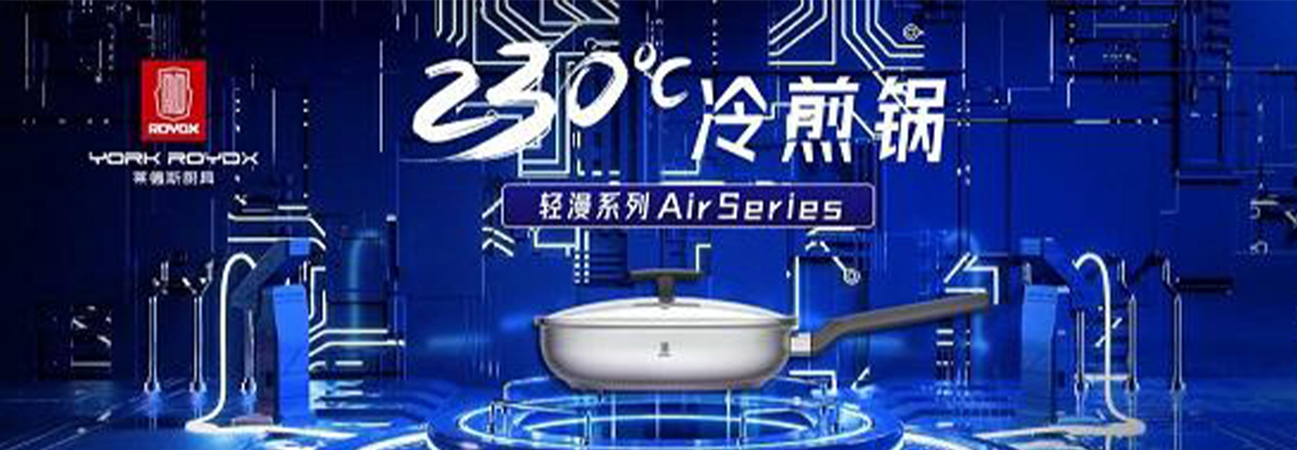 发布会还有第二大亮点,那就是将上市两款采用了TH1制作而成的黑科技厨具。分别是莱德斯轻漫系列Air Series–230℃冷煎锅和德纳斯事事如意230℃恒温煎炒一体懒人锅。