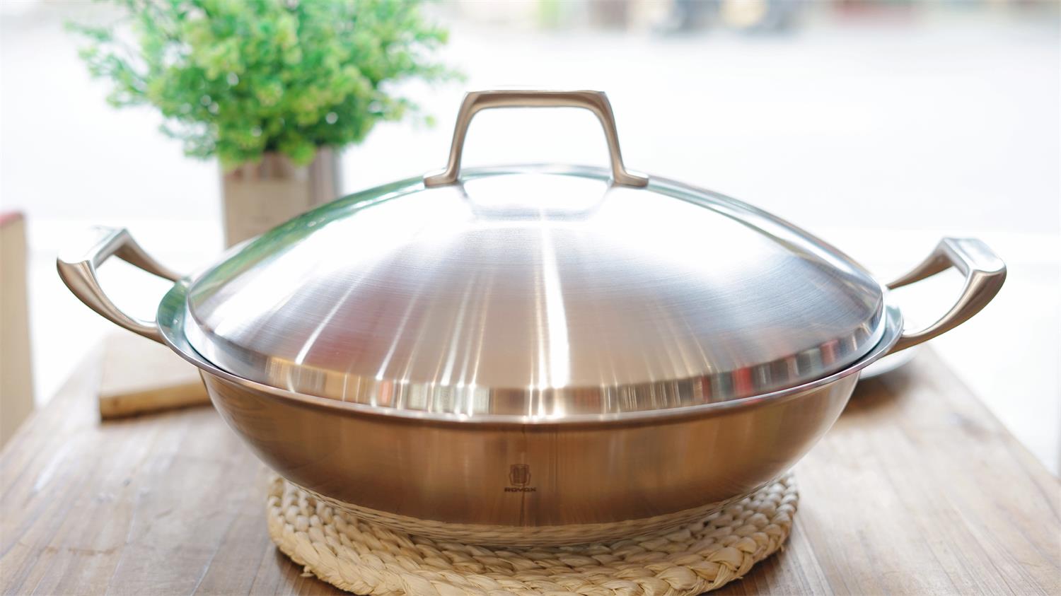 莱德斯尊尚Ⅲ系列-36cm双耳圆底胀盖中式炒锅:锅身、锅盖新升级为进口316L优质不锈钢,手柄全新升级为更符合人体工程学贴合拇指的微凹设计,钢铝钢三层体成型圆底设计,符合中国家庭的烹饪习惯;