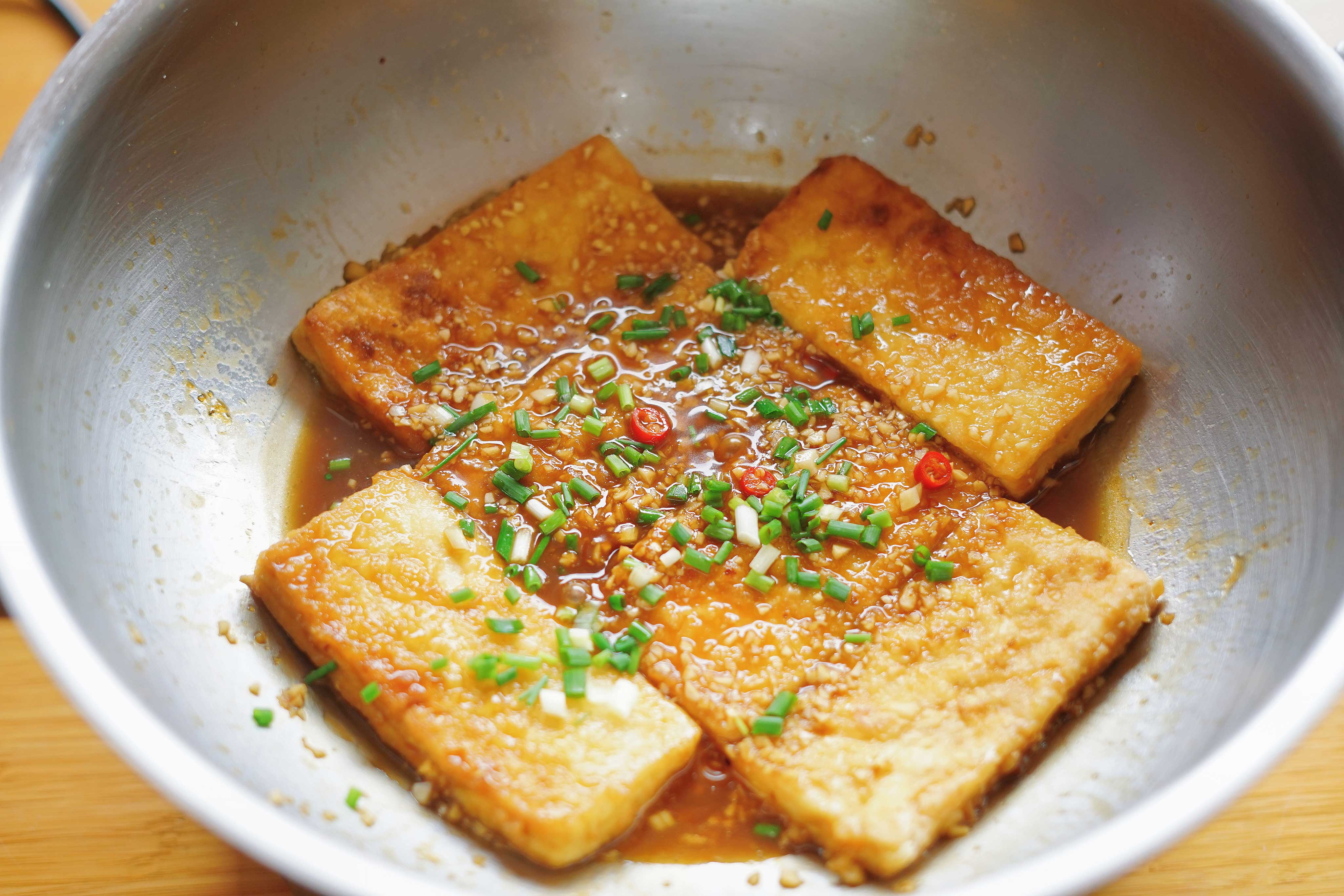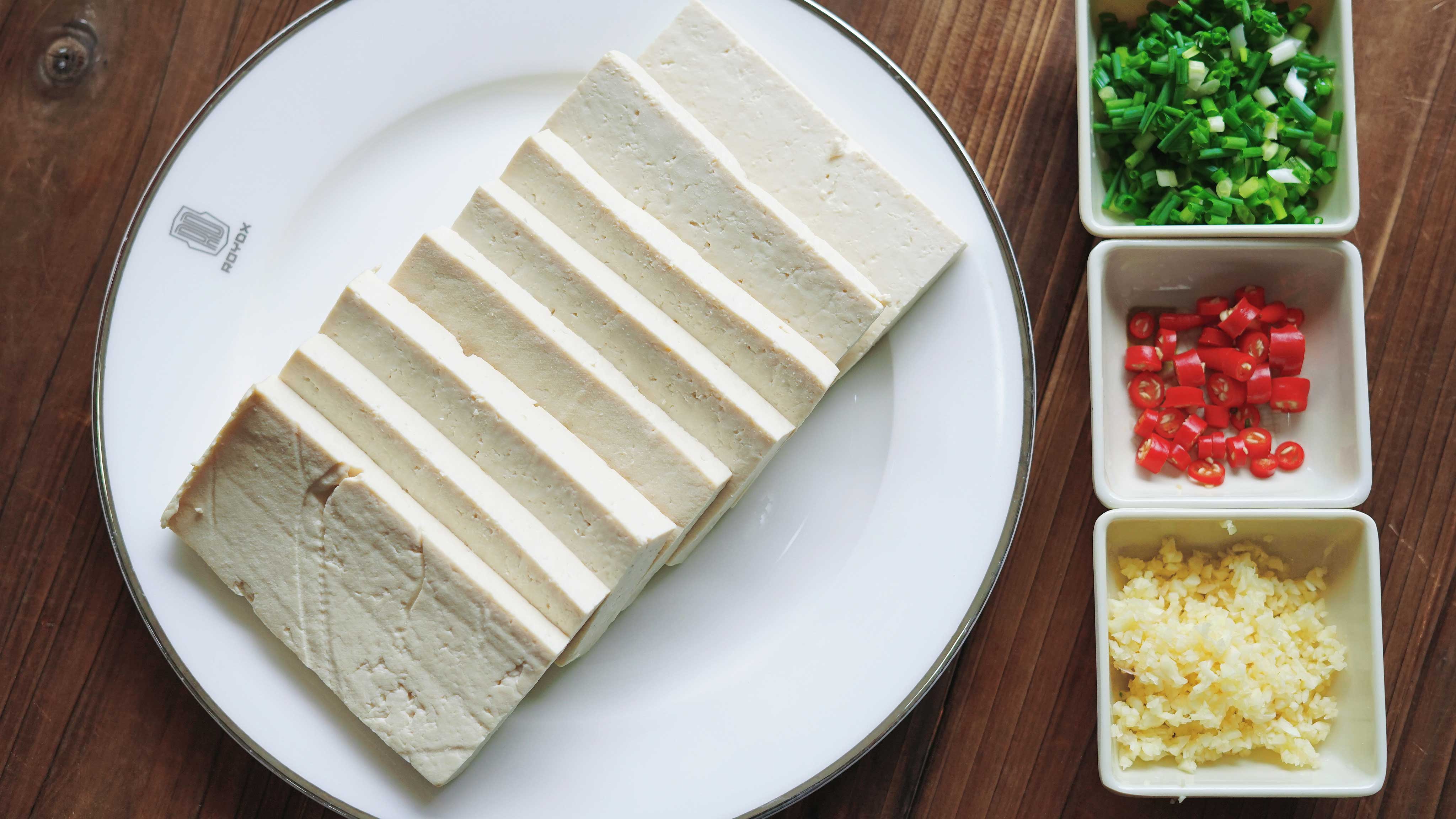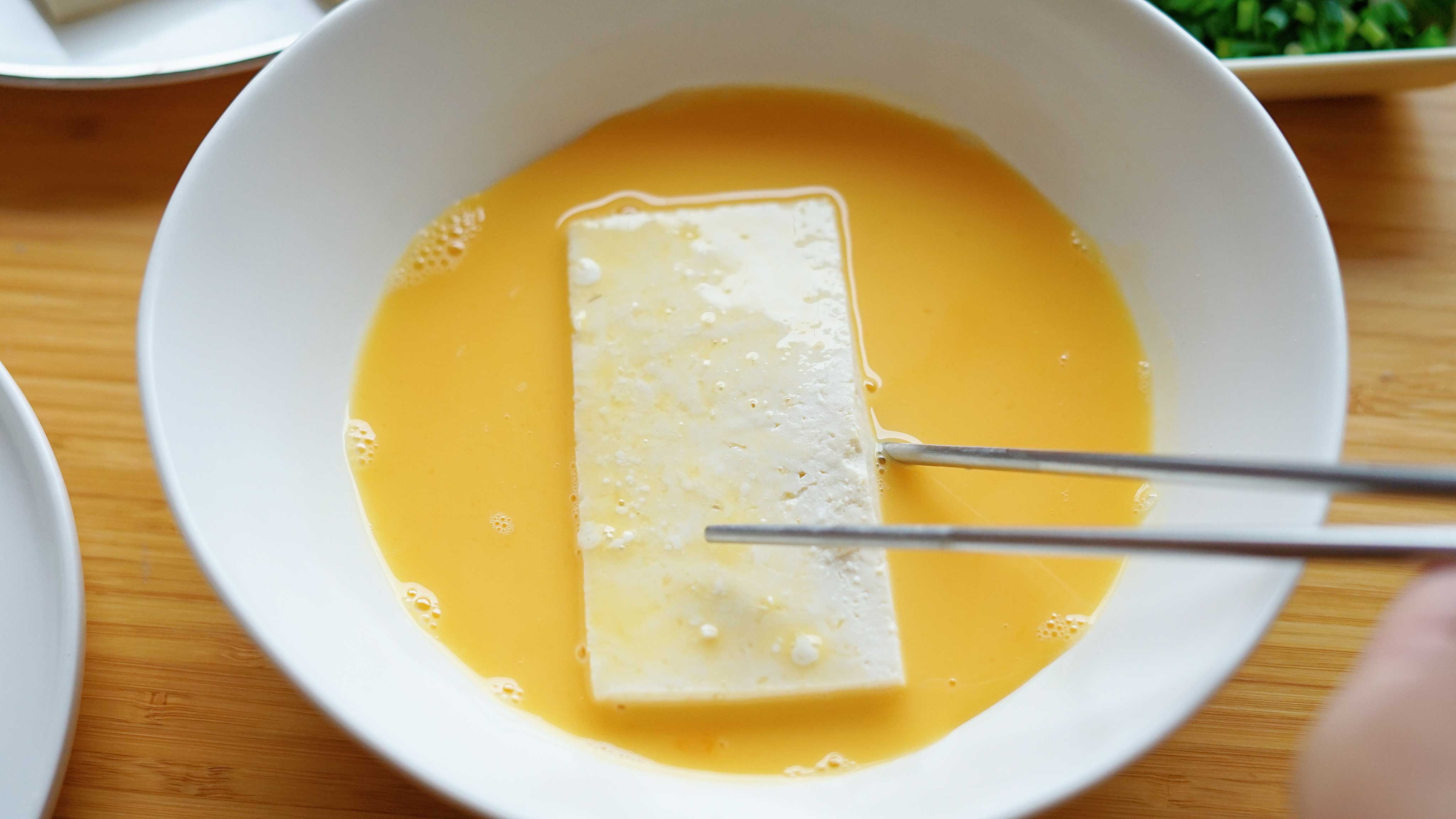 ① 选用老豆腐,嫩豆腐水份太多,煎的时候容易散掉。老豆腐煎之前,将表面的水份吸干,避免煎的时候油溅。