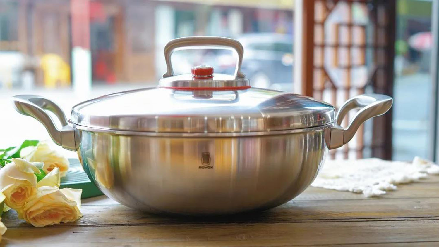 采用进口316L优质不锈钢打造,钢铝钢五层一体成型,导热快速均匀、省时省油;健康不粘易清洗,轻松为你解决重油烟烦恼;新升级专利气阀,可根据食物灵活排放或凝聚水蒸气;煎、炒、焖、焗、炸、煮皆可,全面满足各种烹饪需求。