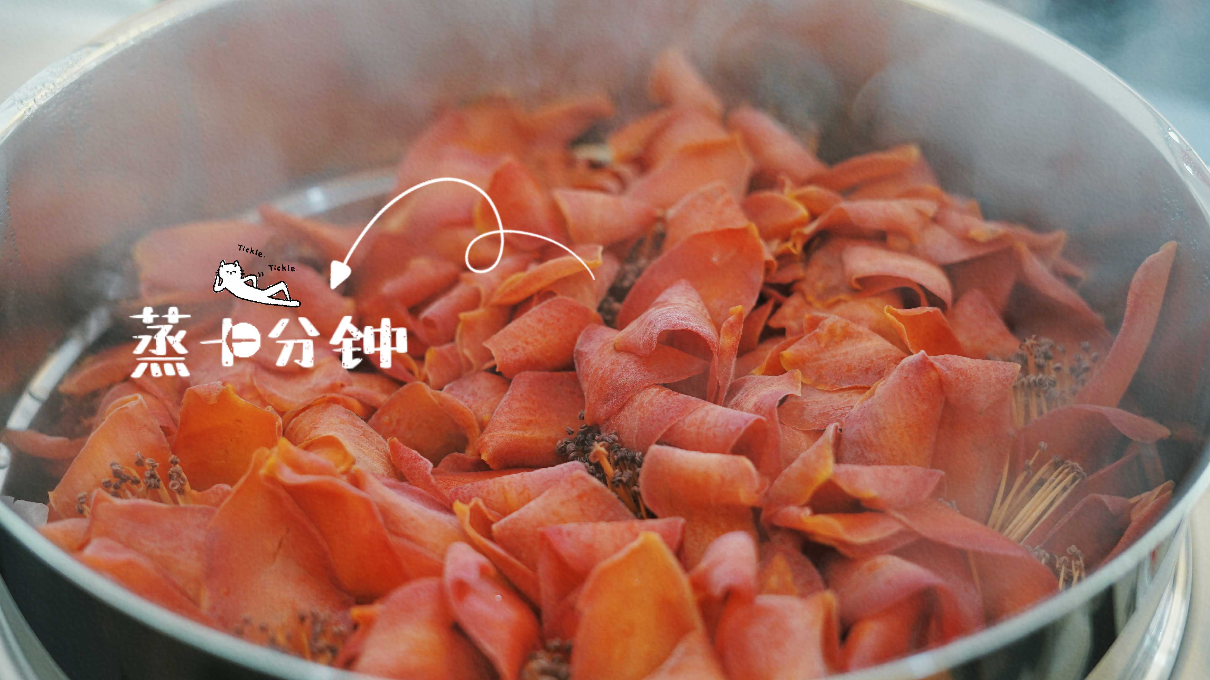 2、把清洗干净的木棉花上锅蒸10分钟。