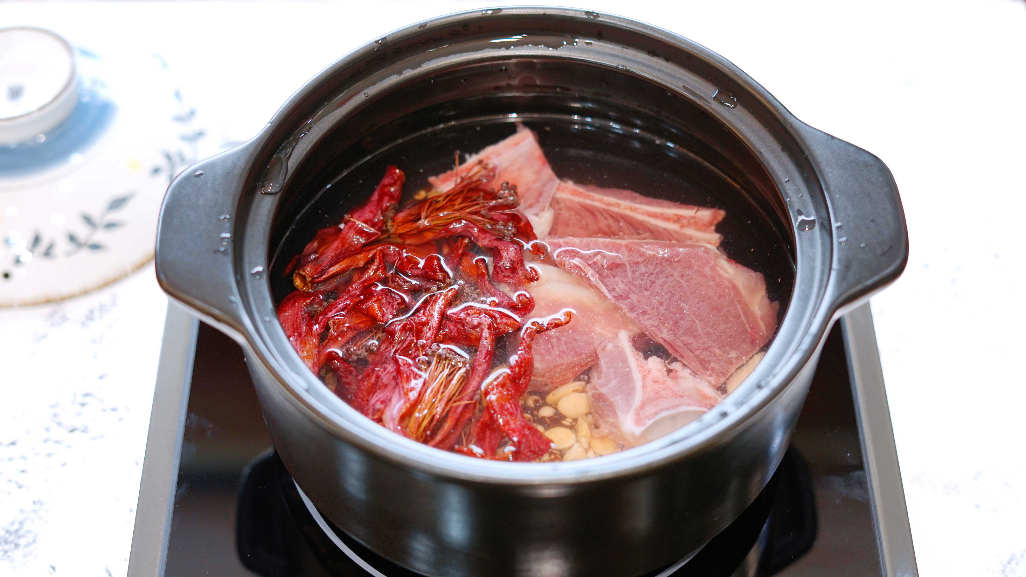 ②赤小豆、扁豆、山药干需洗干净用温水泡30分钟,木棉花干清洗干净后用温水泡10分钟备用。