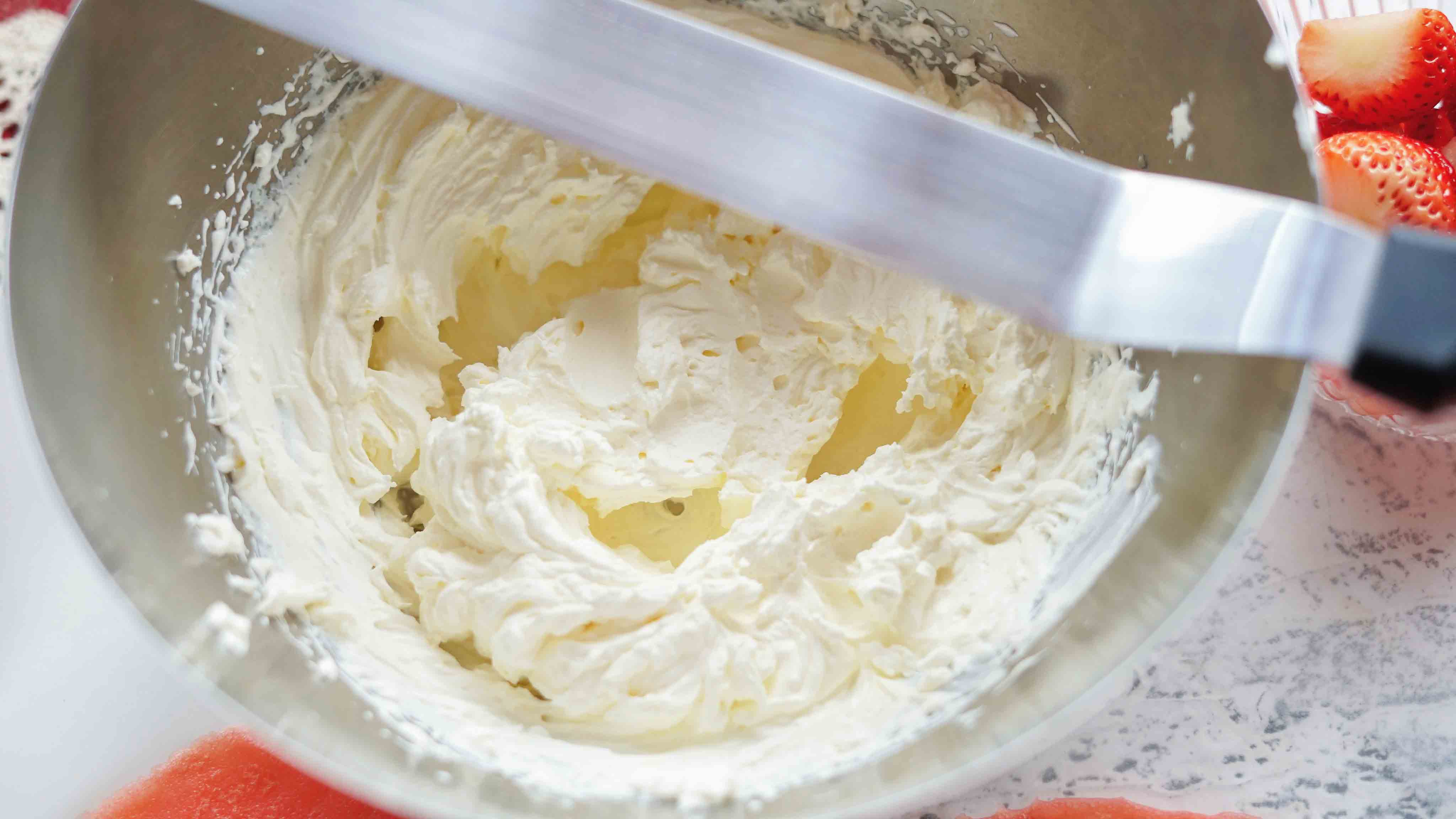 ②奶油可以打到八九成发,打硬一点毛巾卷的形状会比较好看。