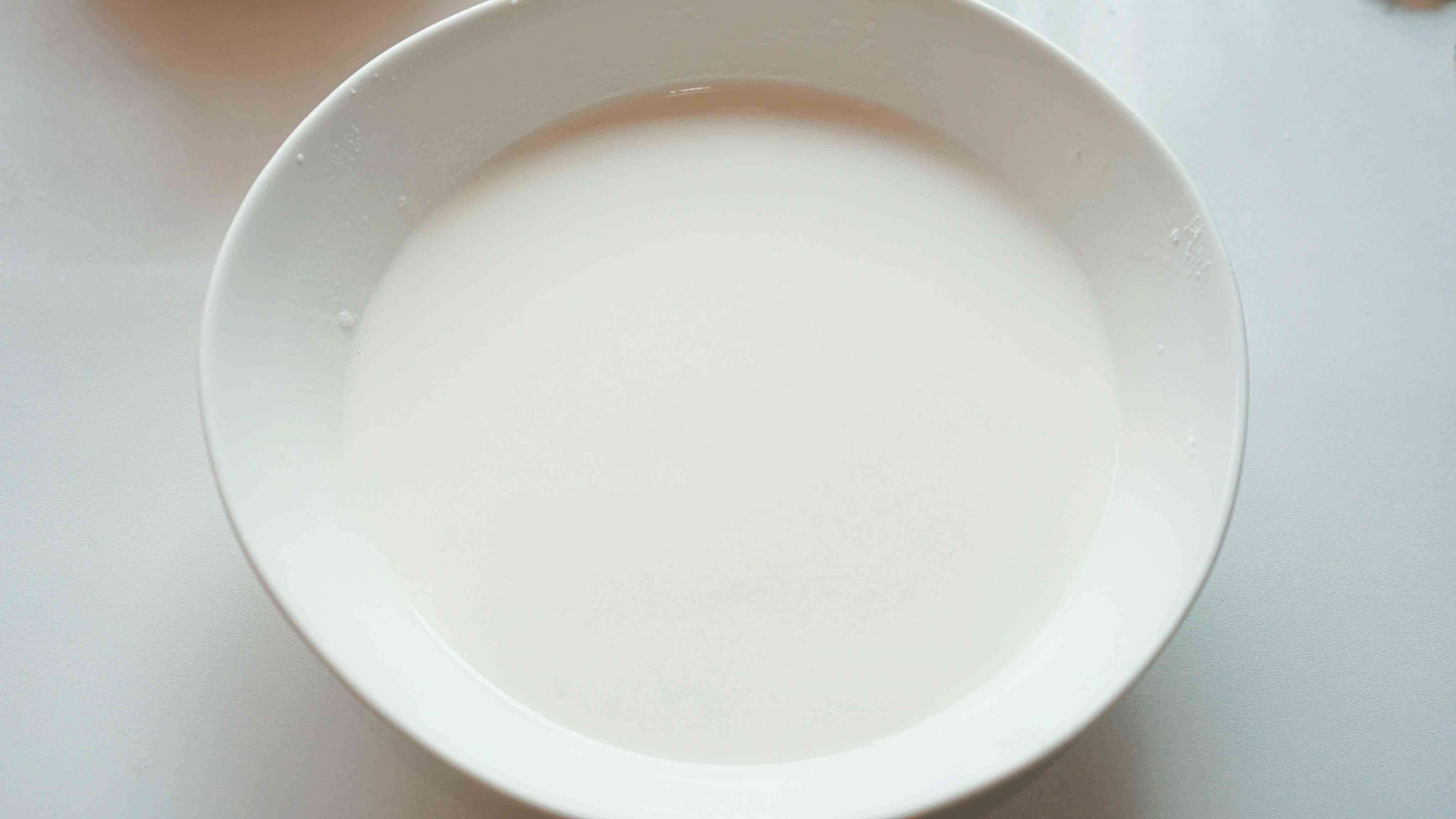 2、糯米粉,玉米淀粉,白砂糖,牛奶倒进一个大碗里,搅拌至没有颗粒。
