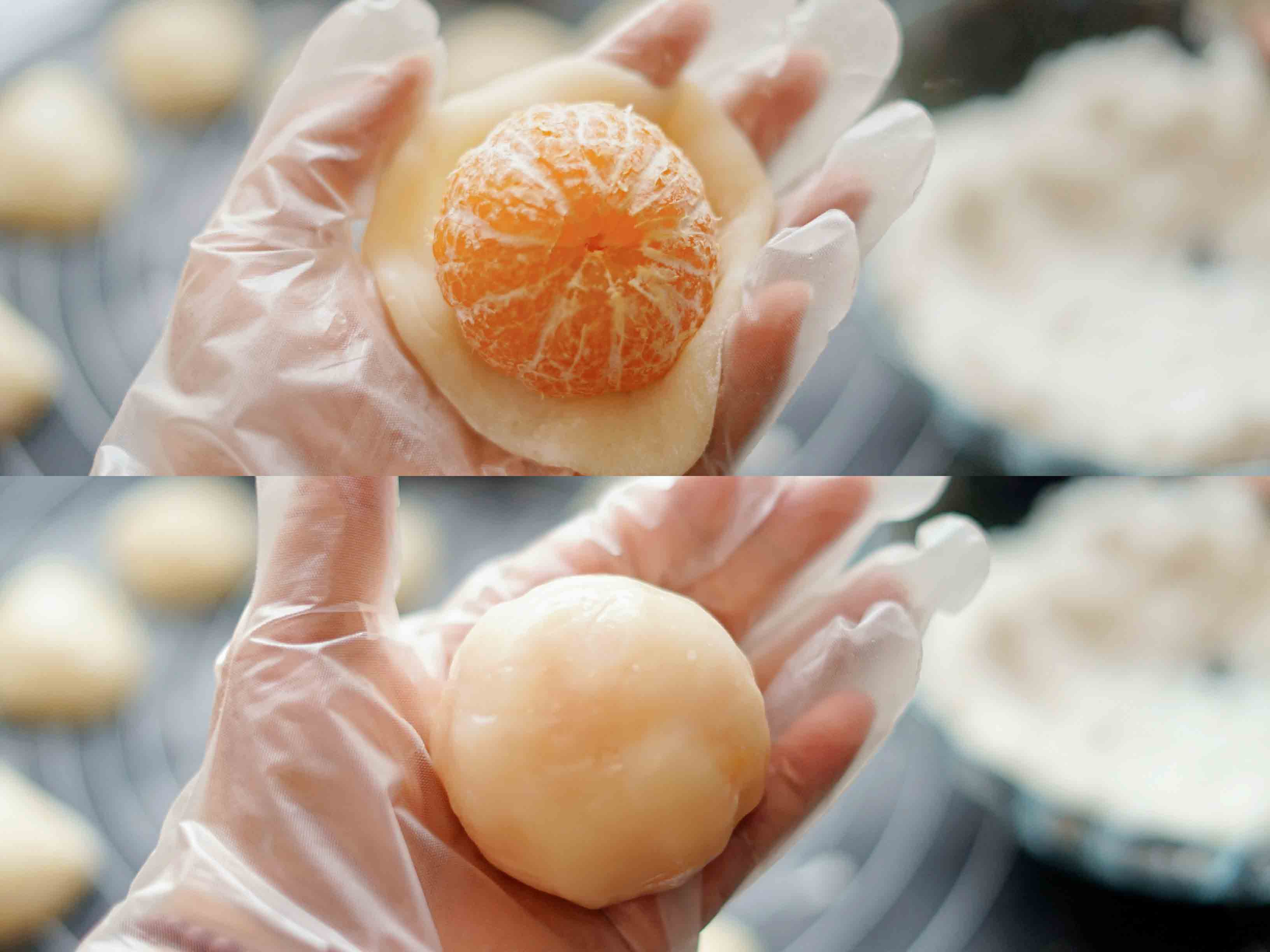 8、包好再滚一圈手粉防粘,也可以裹一圈椰蓉;水果糯米糍就完成啦~
