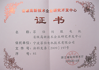 "Provincial High-tech Enterprise R&D center of Physis Servo System"