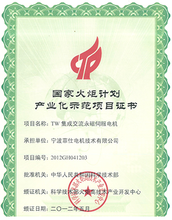“TW Series Integrated Servo Motor”was awarded as demonstration project of National Torch Plan industrialization