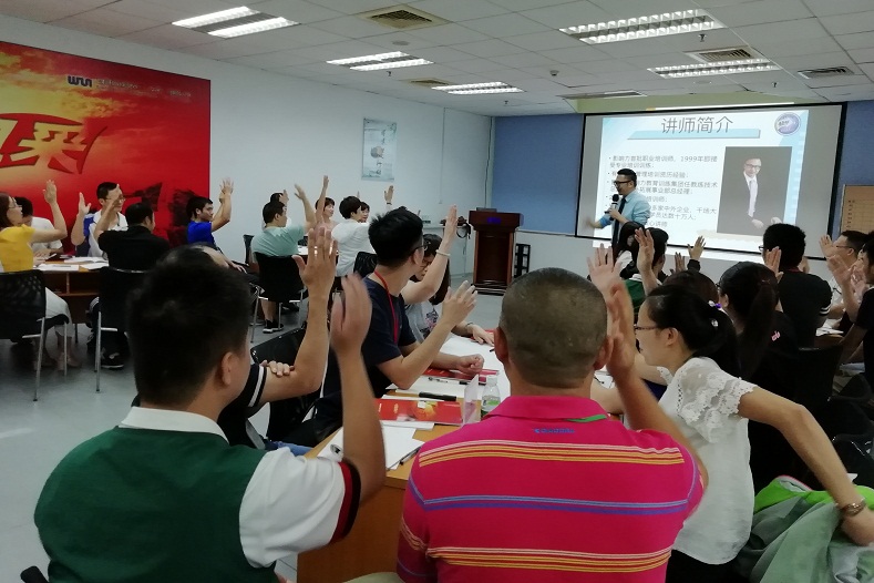 2018年8月17-18日宝嘉创业制衣厂(云浮)有限公司组织了一场挑战不是不可能的管理培训课程,影响力集团核心金牌讲师劳建民先生为70多名管理精英做了精彩训练。培训中劳建民老师深入浅出地讲解了卓越团队的9大理念、目标、领袖的9重洗礼等,并结合具体案例讲解带领团队从成功走向卓越……深入浅出、娓娓道来,在学员中间产生了广泛的共鸣,赢得了在场全体学员热烈的掌声。