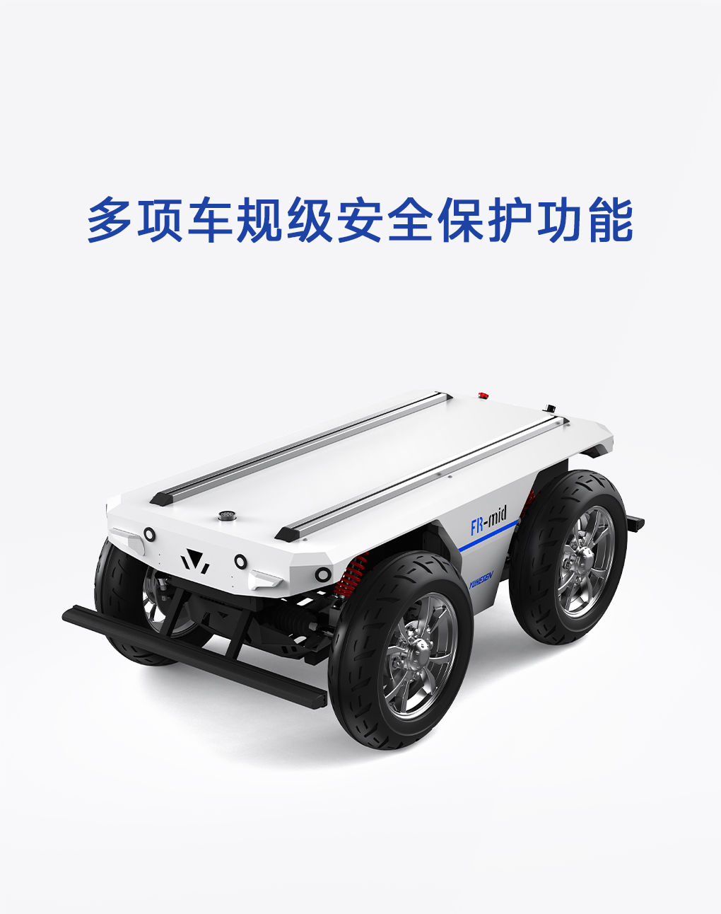 物理急停与遥控安全开关双重保障,同时支持拓展防碰撞传感器,助力场景开发更安全