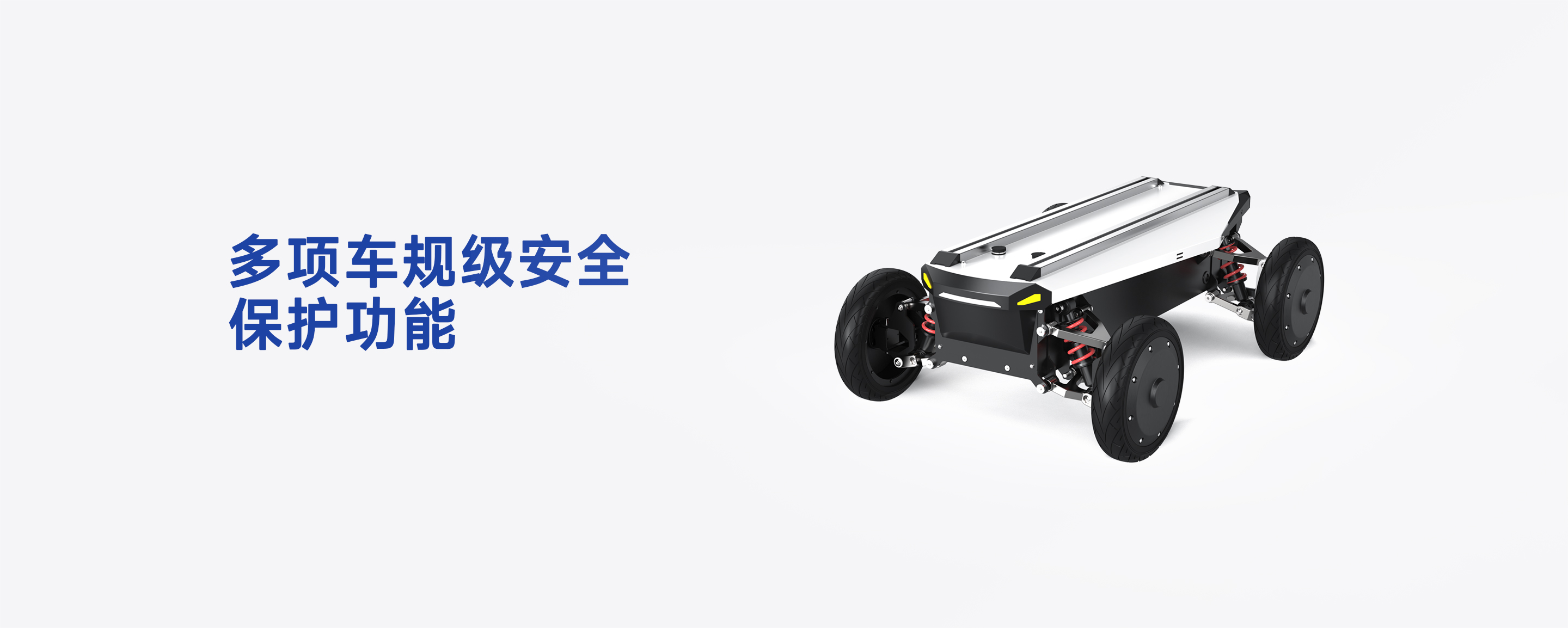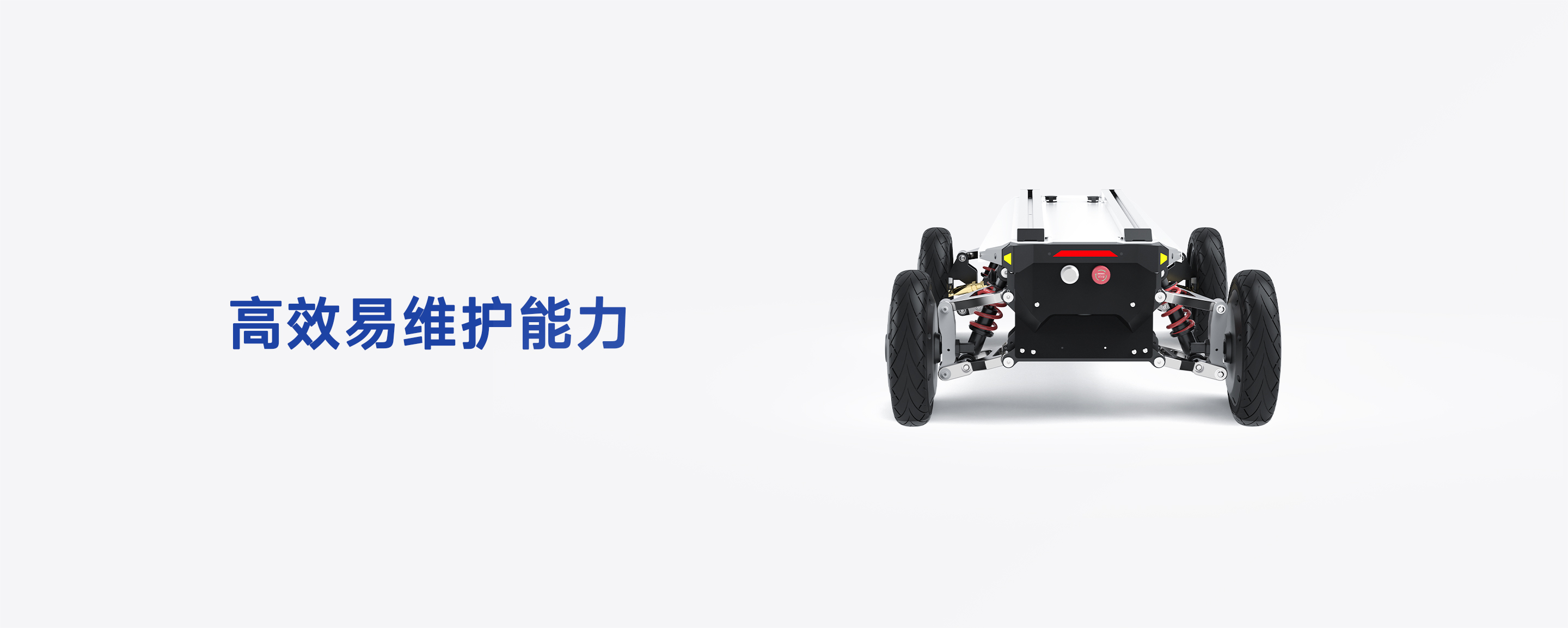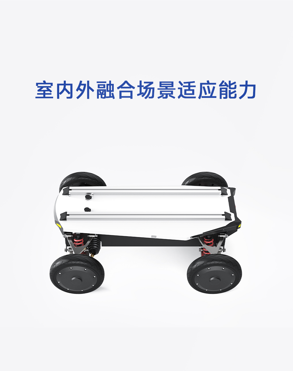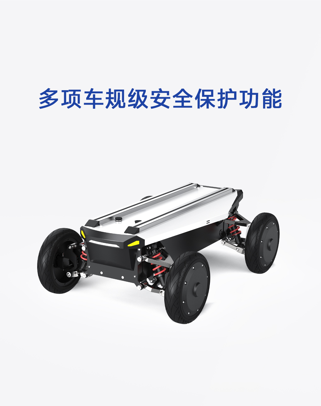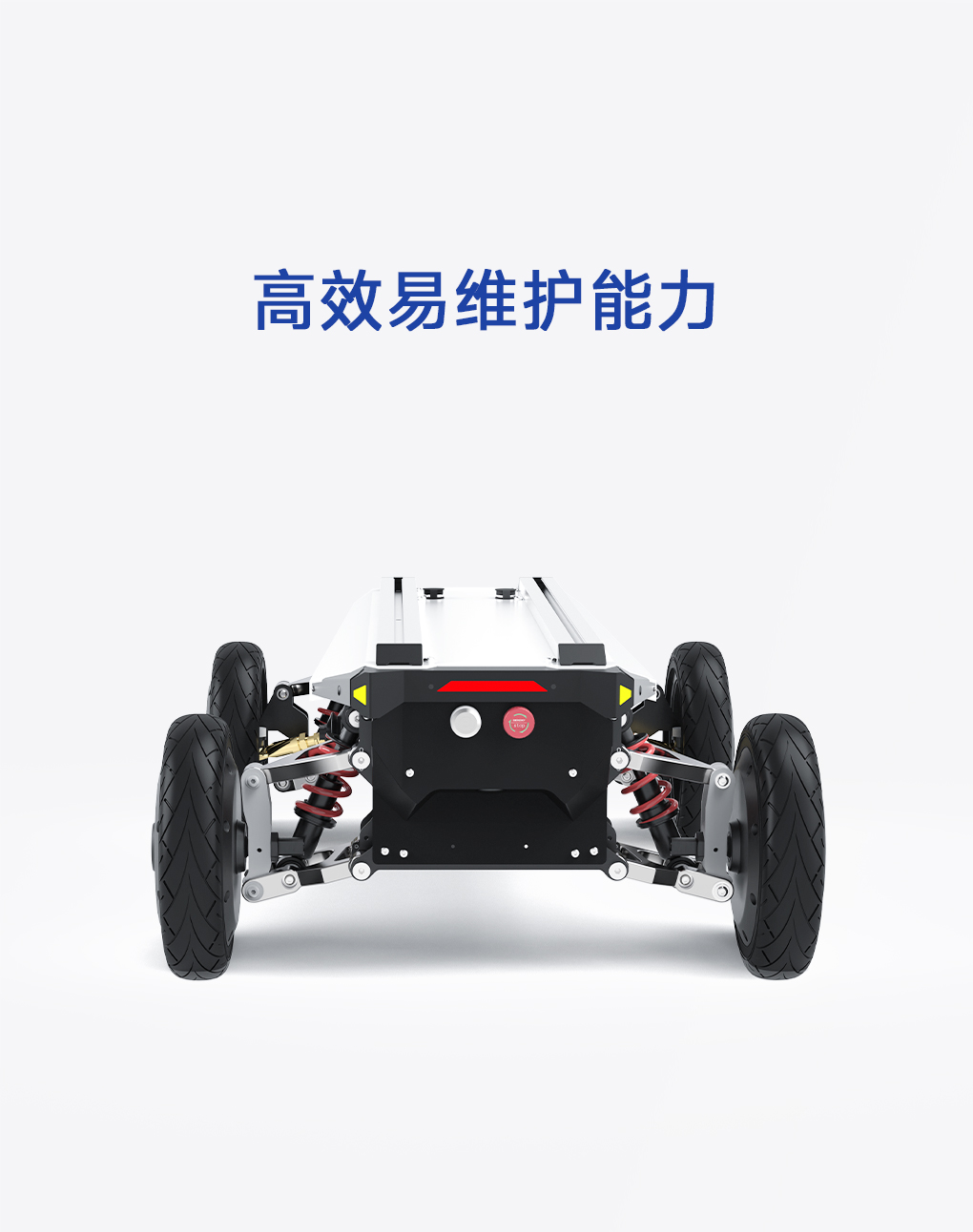 底盘采用全地形独立悬挂设计,具备卓越的减震性能,并融合毫米级运动控制精度,实现更平稳、更灵敏的动态响应。模块化结构结合车规级安全设计,兼顾稳定与机动表现。