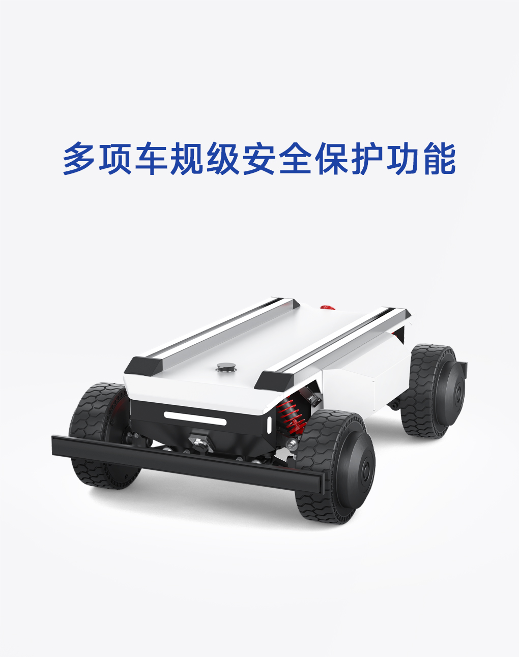 底盘采用全地形独立悬挂设计,具备卓越的减震性能,并融合毫米级运动控制精度,实现更平稳、更灵敏的动态响应。模块化结构结合车规级安全设计,兼顾稳定与机动表现。
