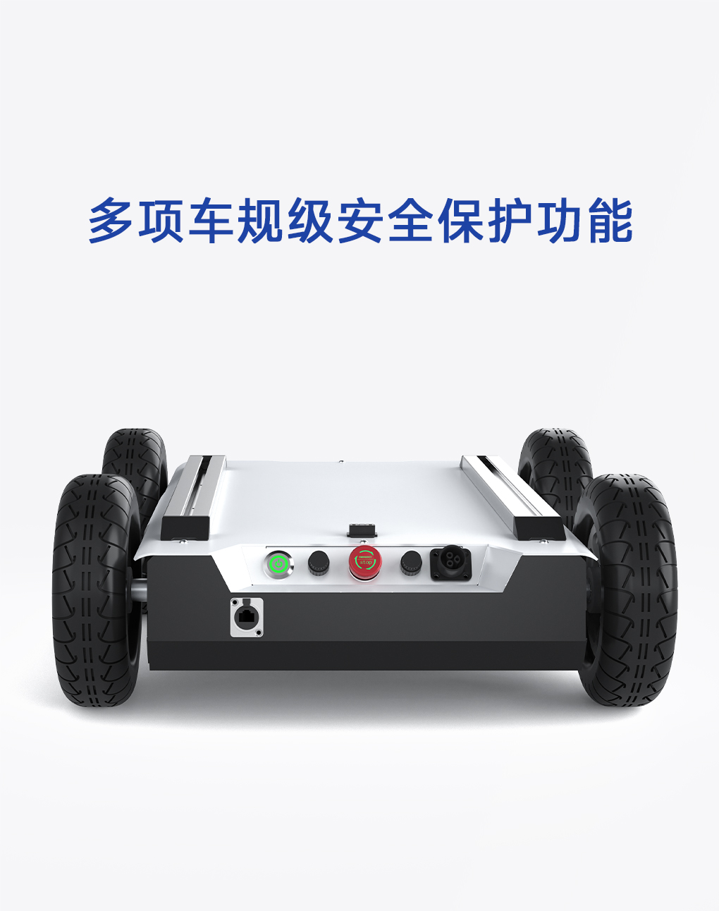 物理急停与遥控安全开关双重保障,同时支持拓展防碰撞传感器,助力场景开发更安全