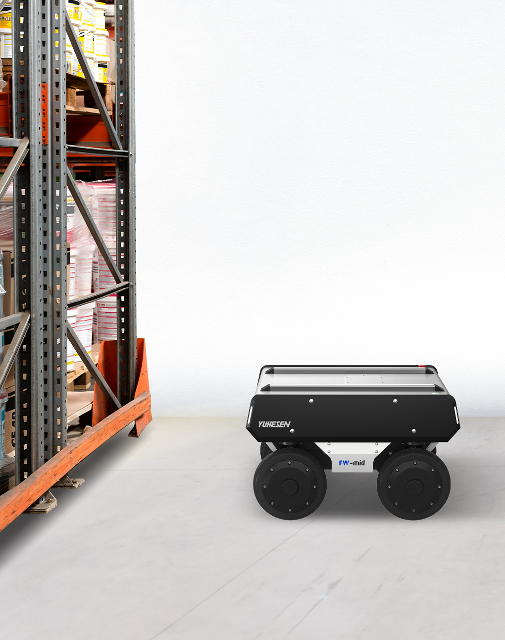 The chassis features a high-precision real-time responsive motion control algorithm, supporting multiple motion control modes, including pivot steering, dual Ackermann steering, lateral shift and oblique shift.