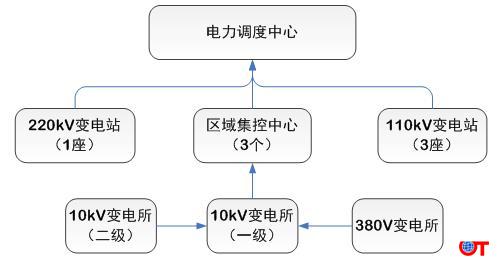 本示范项目供电系统包括1座220kV变电站、3座110kV变电站、17座35/10/0.4kV中心变电所、14座10/10/0.4kV中压变电所。在综控楼设置全厂电力调度中心,在220kV和110kV变电站设置值班点,同时在110kV变电站配置区域集控中心,对变电站及下属变电所进行管理。项目供电系统管理组织架构如下: