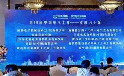 2018年4月26日,以“智能•互联•高效•安全”为主题的“国家电气论坛暨第14届中国电气工业发展高峰论坛”在北京顺利召开。在此备受业内瞩目的年度盛会上,优特科技荣获“2018年度中国电气工业贡献力十强”称号。