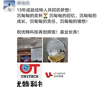 这座奖杯不仅承载着公司对这群为优特奉献青春、同兴共荣的老员工们的感激,也是一份美好的纪念。