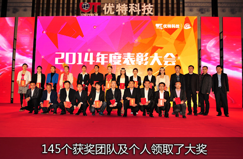 首先举行的是2014年度表彰大会,优特科技总经理田伟云先生发表了以“建设现代高科技企业,实现优特可持续发展”为主题的致辞,在回顾优特辉煌成就的同时,也指明了公司可持续发展的五大战略目标,“谋万事者才能谋一时,谋全局者才能谋一域”,田总的讲话必将激励所有优特人团结一心,向着共同的目标继续同划桨开大船。之后的颁奖环节,为在2014年表现突出的145个获奖团队及个人颁发了大奖,超过90万元的奖金总额也达到历史新高。