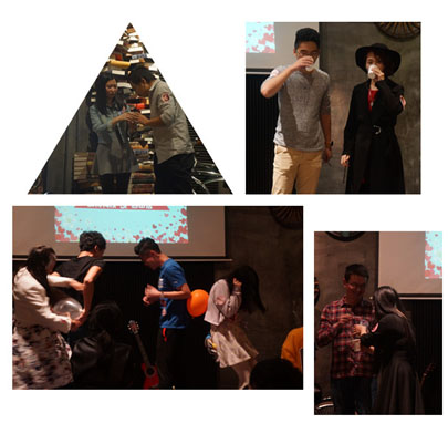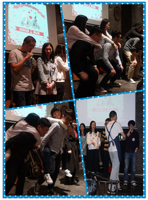 小伙伴相互交流,男生可以在这一轮热身游戏中,直接约女神看电影,如果女神答应了,就能获得本轮游戏的奖品:电影票+星巴克咖啡哦!小编想知道左下角的帅哥美女,你们看的电影是《你的名字》吗?另外,交流后,男生要说出站在他对面的女生名字,如果说错了,就要罚做俯卧撑啦!右下角的帅哥,你在上演一个“为何单身”的故事!