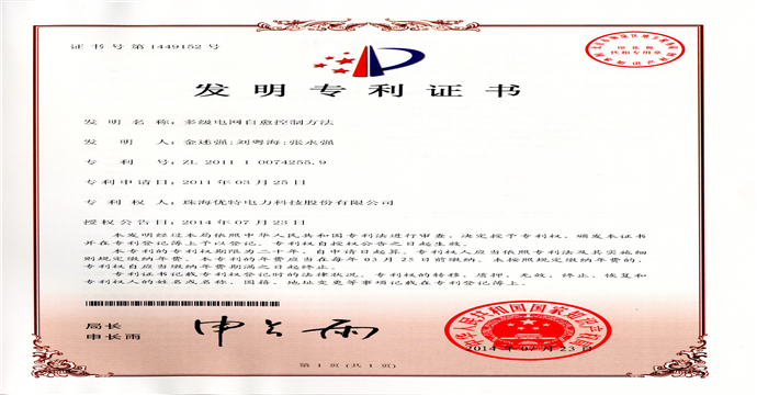 • 近日,珠海优特电力科技股份有限公司自主研发的“多级电网自愈控制方法”(发明专利号:201110074255.9 )通过国家知识产权局的严格审查,正式获得发明专利授权。截止目前,公司累计申请专利307件,拥有有效授权专利199件,其...