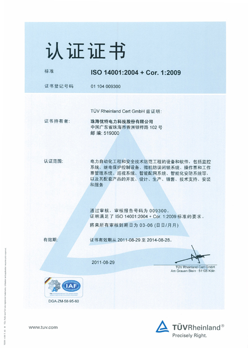 • 8月29日,优特科技顺利通过国际知名认证商TüV(德国莱茵)的ISO14001环境管理体系认证。 优特一直倡导“绿色环保”、“低碳节能”的发展模式,确立“遵守法规、健康安全、绿色环保、和谐发展”的环境方针。公司于201...