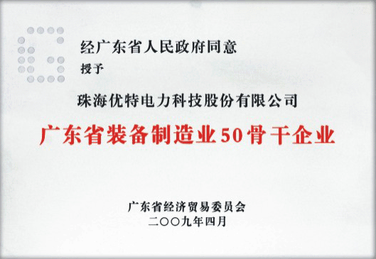 •   2009年4月,珠海优特公司被认定为 "广东省装备制造业50骨干企业"。是广东省经贸委根据省委、省政府《中共广东省委、广东省人民政府关于加快发展装备制造业的意见》(粤发〔2003〕16号文)精神,依据《广东...