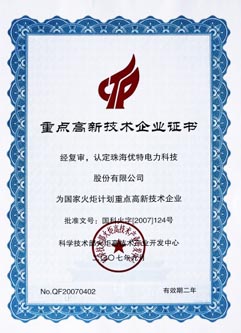 • 根据《国家火炬计划重点高新技术企业认定条件和管理办法》的要求,经专家严格评审,优特公司被科学技术部火炬高技术产业开发中心认定为“国家火炬计划重点高新技术企业”。这是继2005年以来,我司再次喜获这一荣誉,它不仅...