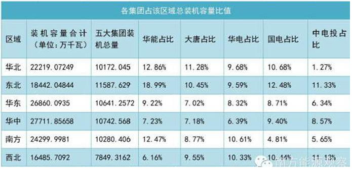 华能作为五大集团装机容量最高的一家(15149万千瓦),在东北与南方两大区域均有超过3000万千瓦的装机容量。在内蒙古,华能装机容量达2282万千瓦,占了该区总装机容量近25%的份额。在由广东、广西、云南、贵州和海南五省区组成的南方区域中,华能在云南一省便分布了约2138万千瓦的装机容量,这一数字是云南全省总装机容量的31%。