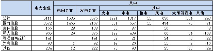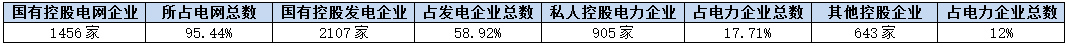 国有控股电力企业分类明细与比重表