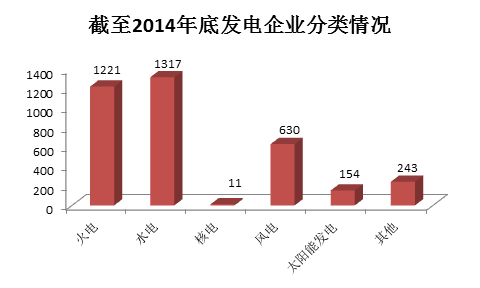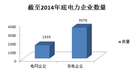 根据国家统计局统计,截止到2014年年底,全国规模以上电力企业5111家(统计口径为年产值2000万元以上的企业,下同)。其中,电网企业1535家,占30.03%;发电企业3576家,占69.97%。