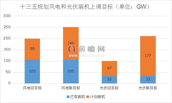 以光伏与风电为代表的新能源是能源互联网价值链的供给侧龙头,将对下游储能和配电网发展。我国能源行业“十三五”规划中,将光伏与风电两大装机目标进行了上调,其中光伏装机目标从100GW上升至150GW,风电装机目标从200GW上调至250GW,体现出国家对这两大新能源的重视。