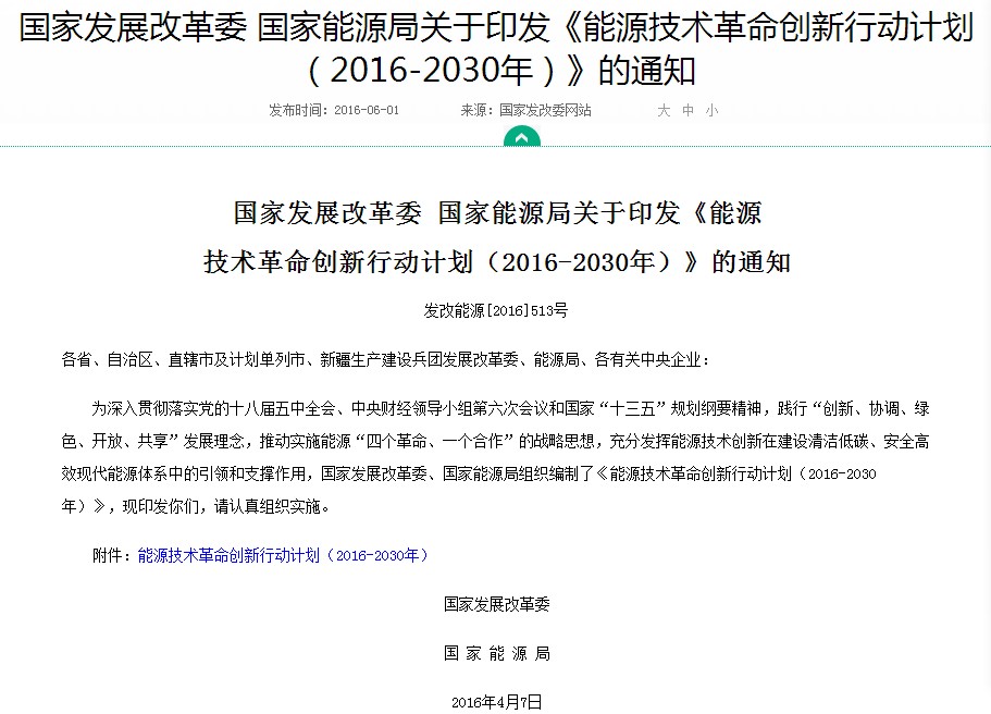 近日,国家发改委、国家能源局近日下发了《能源技术革命创新行动计划(2016-2030年)》(下称《计划》),并同时发布了《能源技术革命重点创新行动路线图》(下称《路线图》)。
