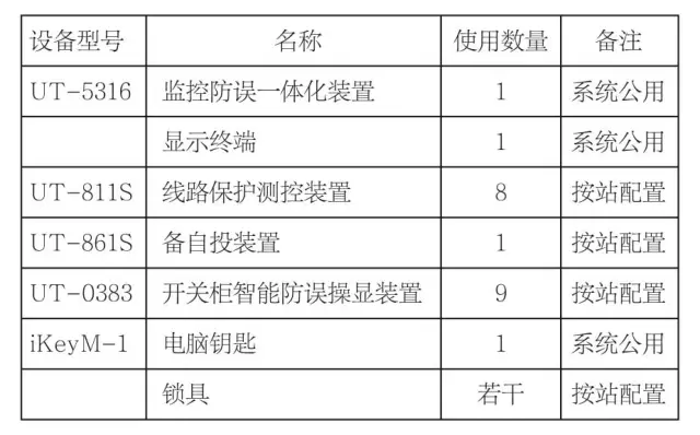 根据该企业开闭所一次设备使用情况,以其中一个开闭所为例,系统设备配置清单如下: