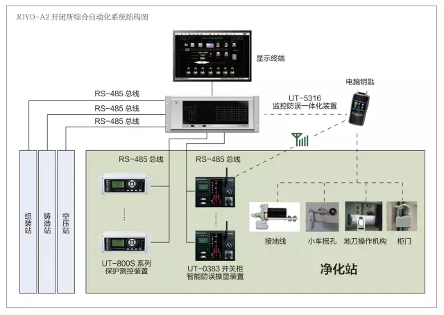 针对用户的需求,优特科技为该厂提供了以UT-5316监控防误一体化装置为核心的JOYO-A2开闭所综合自动化系统解决方案,该系统是优特科技集多年的电力自动化产品研发及工程制造经验,针对开闭所推出的量身定制产品。JOYO-A2主要由UT-5316监控防误一体化装置、UT-800S系列保护测控装置、UT-0383开关柜智能防误操显装置以及其它防误配套产品构成。