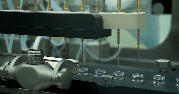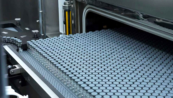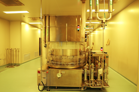 采用东富龙隔离器西林瓶灌装线,配备OEB5级别ISOLATOR隔离器,配有10m²、25m²冻干机,均配有独立全自动进出料系统