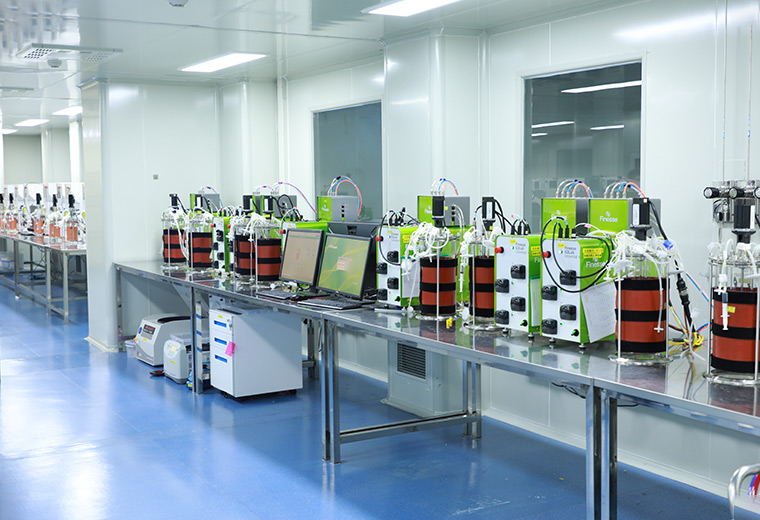 澳斯康生物制药的上游生产团队基于公司成熟的自有平台,包括 MeCHOta® CHO-K1 稳定细胞株与 pTOB 高表达载体系统,为重组蛋白的高效表达奠定坚实基础。我们灵活运用多种培养策略,如 Fed-batch、Intensified Fed-batch (IFB)、Concentrated Fed-batch (CFB)以及 Perfusion 灌流培养等多模态培养策略,团队能够针对目标分子的特性优化表达条件,在维持重组蛋白一致性的同时实现高表达产能。