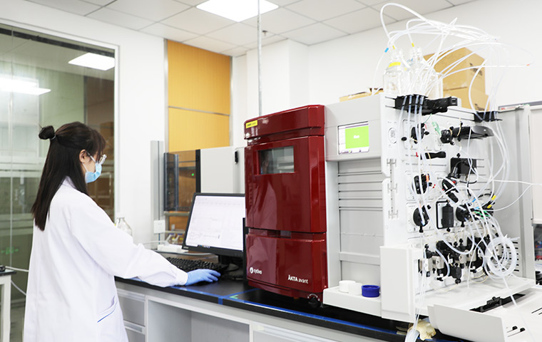 重组蛋白的分子结构复杂,在纯化过程中更易出现片段化、聚集、宿主细胞蛋白(HCP)去除困难等挑战。澳斯康生物制药的下游团队为此建立了针对性的纯化工艺平台;