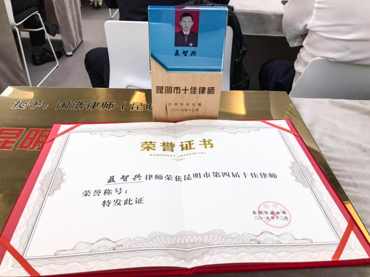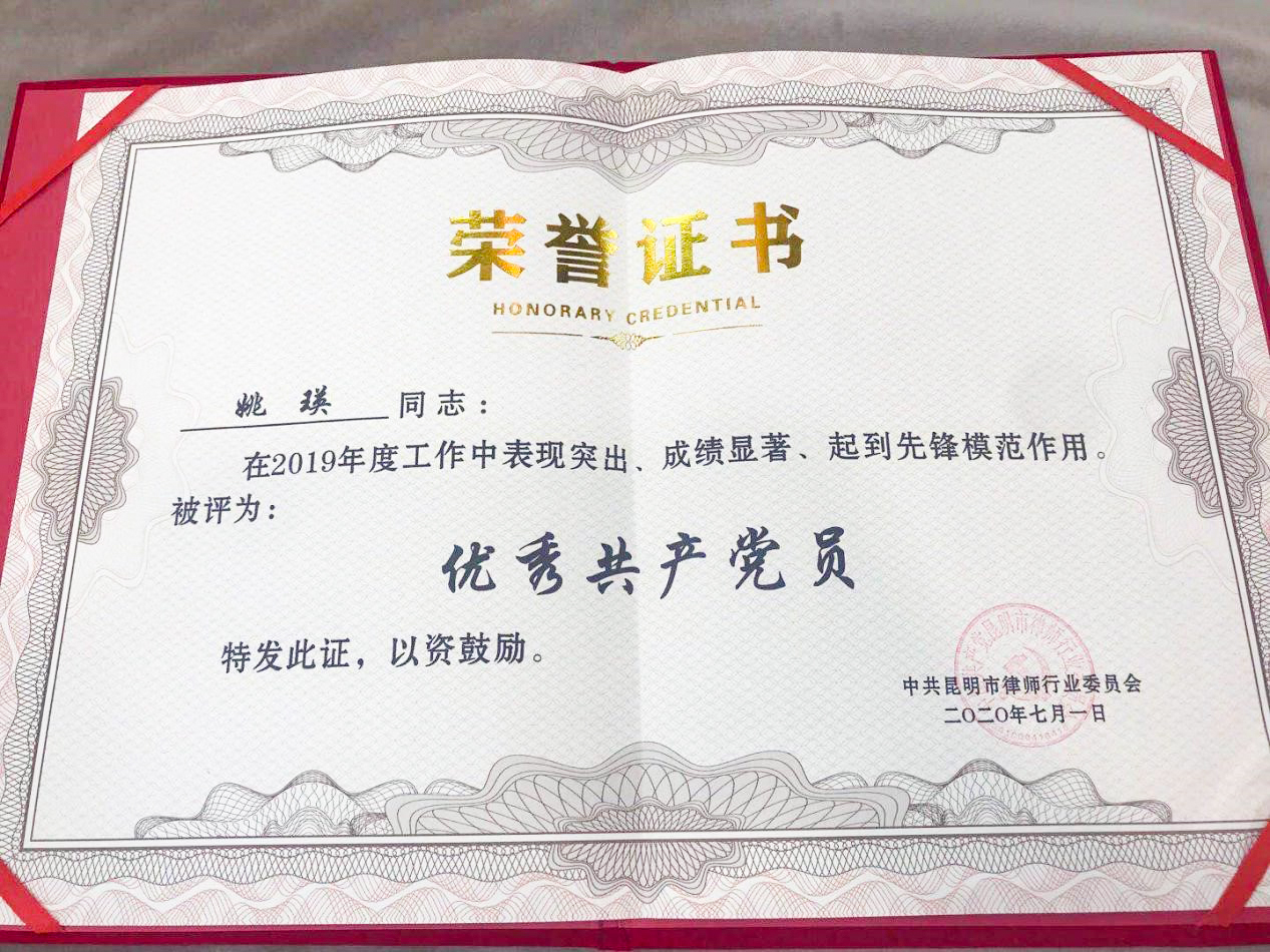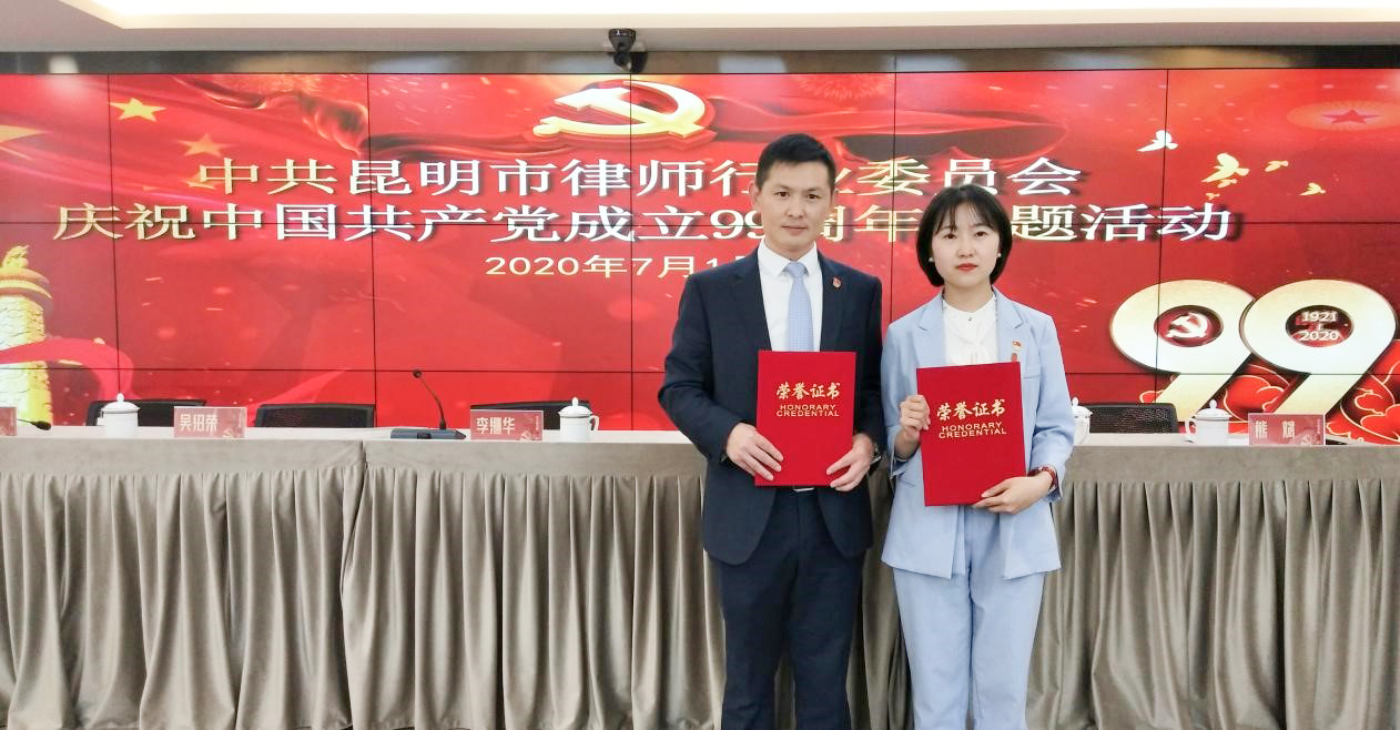 2020年7月1日,昆明市律师行业党委组织开展庆祝中国共产党成立99周年主题活动。大会上,国浩昆明办公室被昆明市司法局授予“昆明市十佳律师事务所”称号,国浩昆明管理合伙人聂智兴被授予“昆明市十佳律师”称号,国浩昆明律师姚瑛被授予“昆明市律师行业优秀共产党员”称号。
