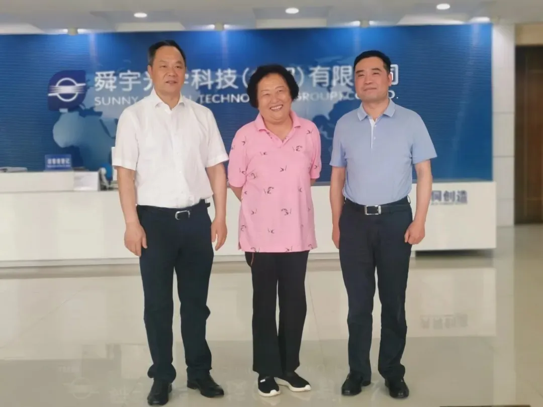 赵白鸽主任调研舜宇集团,余姚市市委书记奚明(左一)、舜宇董事长叶辽阳(右一)陪同调研