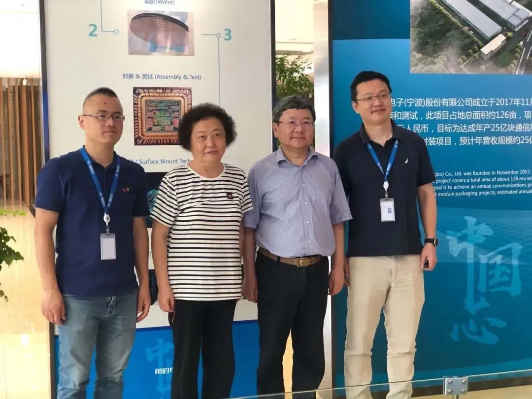 赵白鸽主任调研甬矽电子(宁波)股份有限公司,余姚市委常委、中意宁波生态园党工委副书记、管委会副主任韩柏顺(右二)、甬矽董事长王顺波(左一)陪同调研