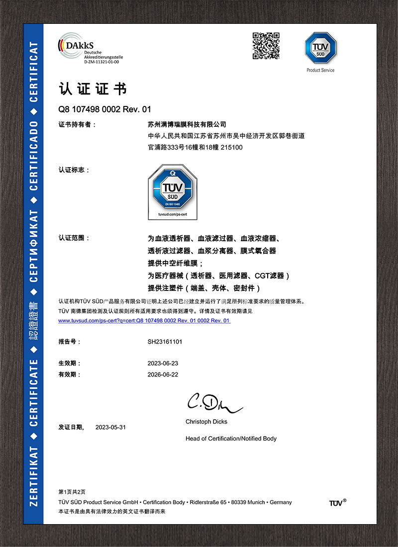 公司凭借膜全产业链的技术覆盖,以医疗行业应用场景为基石,为多行业提供基于膜的过滤解决方案